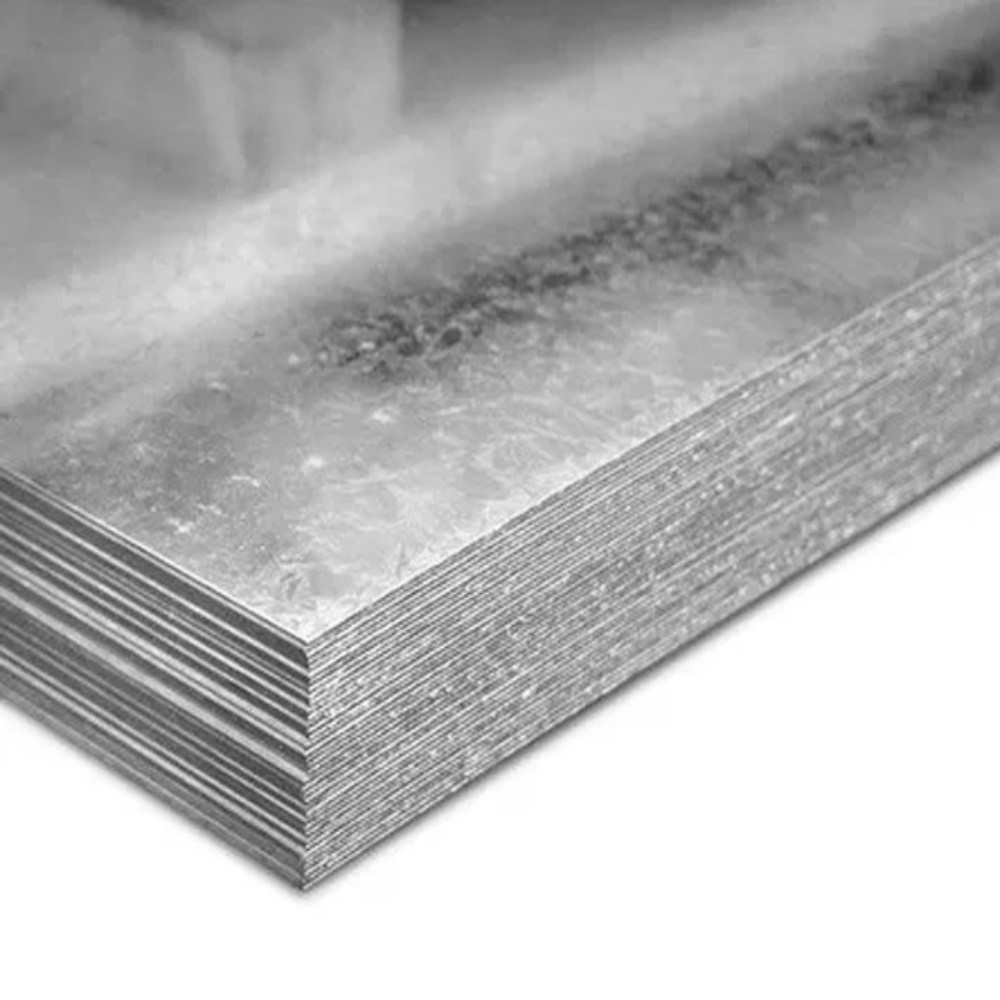 Chapas de aço galvanizado escamada brilhante (cristais normais), nas espessuras de 0,43mm a 1,25mm. São cortadas nos tamanhos: